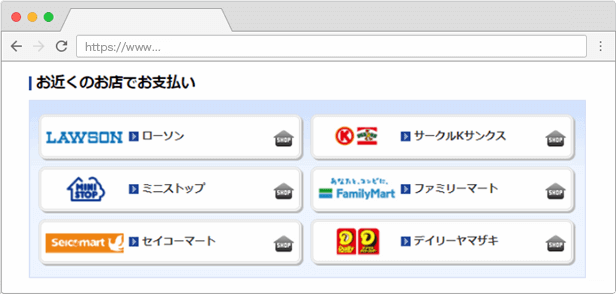 ご希望のコンビニをご選択後、ご利用方法をご覧いただけます。