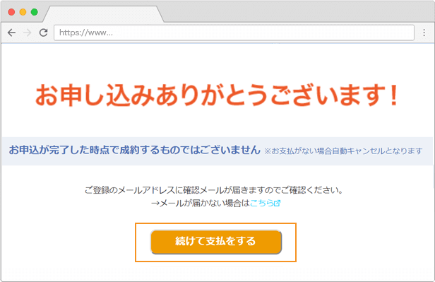 - 続けてお支払いをご希望でない方は、請求書メールをお送り致しますので、メールに記載の決済URLをクリックしてください。